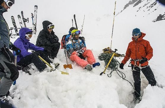 Снег в долине сильно варьирует от экспозиции склонов и высоты. Повсеместно следы от маленьких мокрых  лавин поверхностного слоя (размер не более 0,5) с началом из точки от скал. При нас сходили только небольшие лавины с прогретых скальных полок вершин Советский воин и 3800. Лавинное снаряжение пригодится. Также пригодятся кошки, т.к. с утра и до 10.00 склон жесткий. Мощность снега на леднике Мукал – от 20 см на наветренных участках до 190 см.