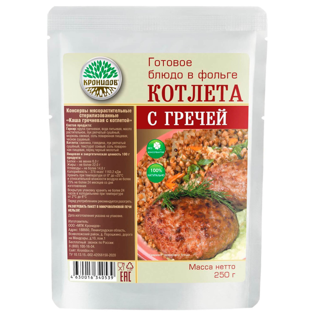 Гарнир: крупа гречневая, вода питьевая, масло растительное, лук репчатый сушеный, морковь свежая, соль поваренная пищевая, чеснок сушеный.